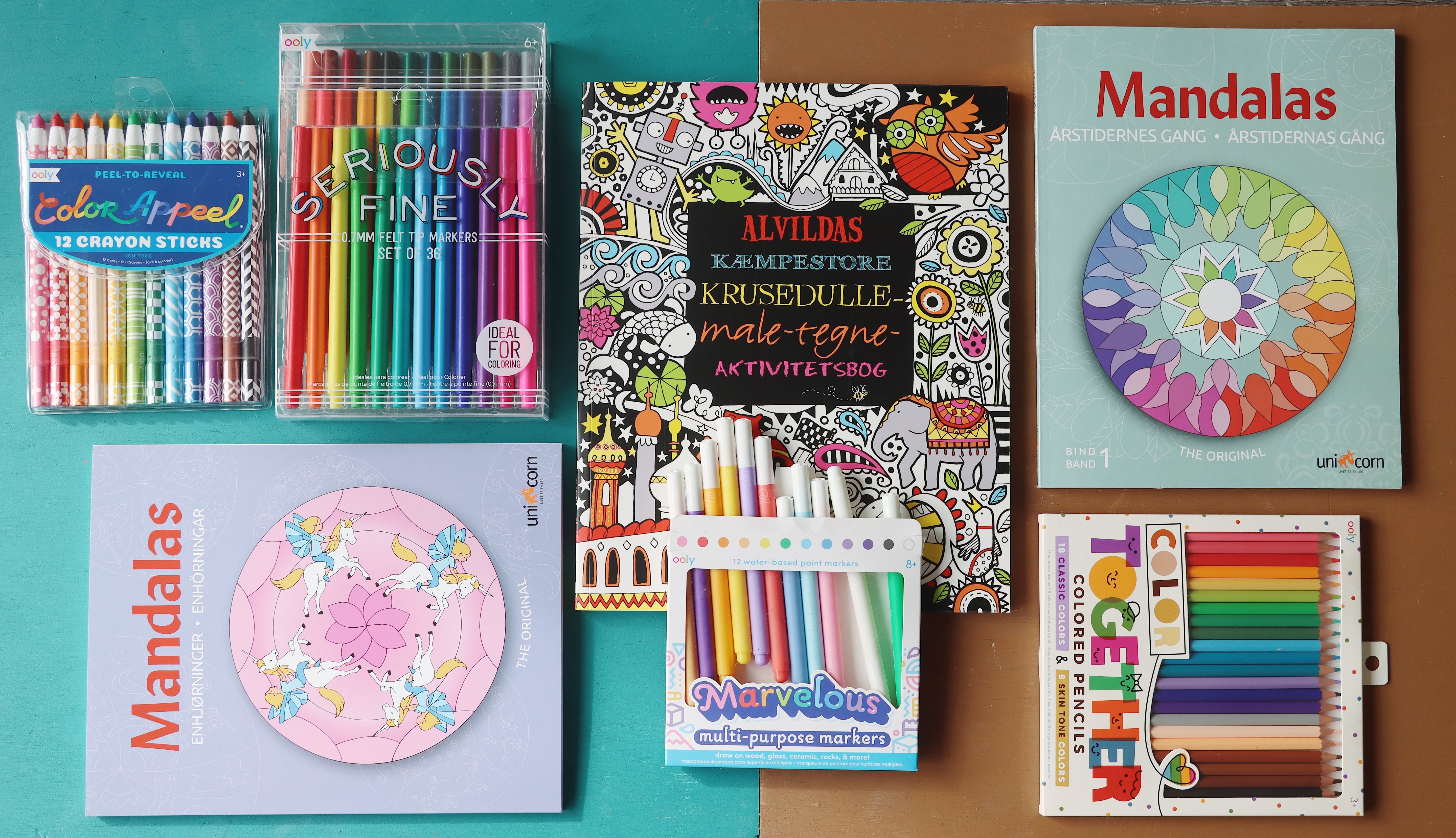 Glimmer tusser tilføjer et strejf af glans og glamour til kreationerne, mens tusser, der kan vaskes af, giver forældre ro i sindet. Mandalas bøger fremmer koncentration og indre ro, mens perler og klistermærker giver mulighed for at skabe smykker og dekorere objekter.