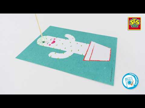 Dyp vatpindene i aqualine farverne, og farvelæg de sjove kort med prikker. Brug pipetten til at blande de røde, blå og gule aqualine farver til forskellige farveblandinger. Aqualine er nem at vaske af de fleste tekstiler.