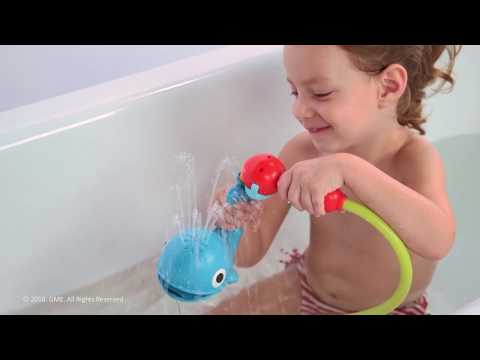 Sættet består af en batteridreven ubåds bruser, der suger vand fra badekarret samt en sjov stor blå hval med springvands effekt. Hvalen fyldes med vand fra ubådsbruseren. Hvalen kan desuden bruges som en kande til at hælde vand ud af eller bare flyde rundt i badet til glæde for de små. Træner koordination og begreber som tom/fuld, tung/let og flyde/synke. Brusehovedet aktiveres med et tryk for start og stop.